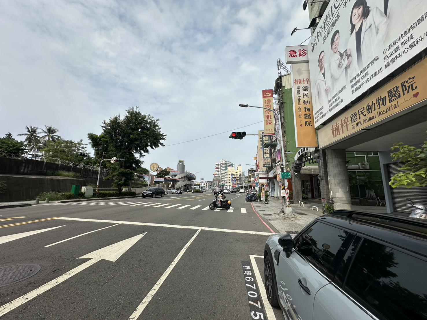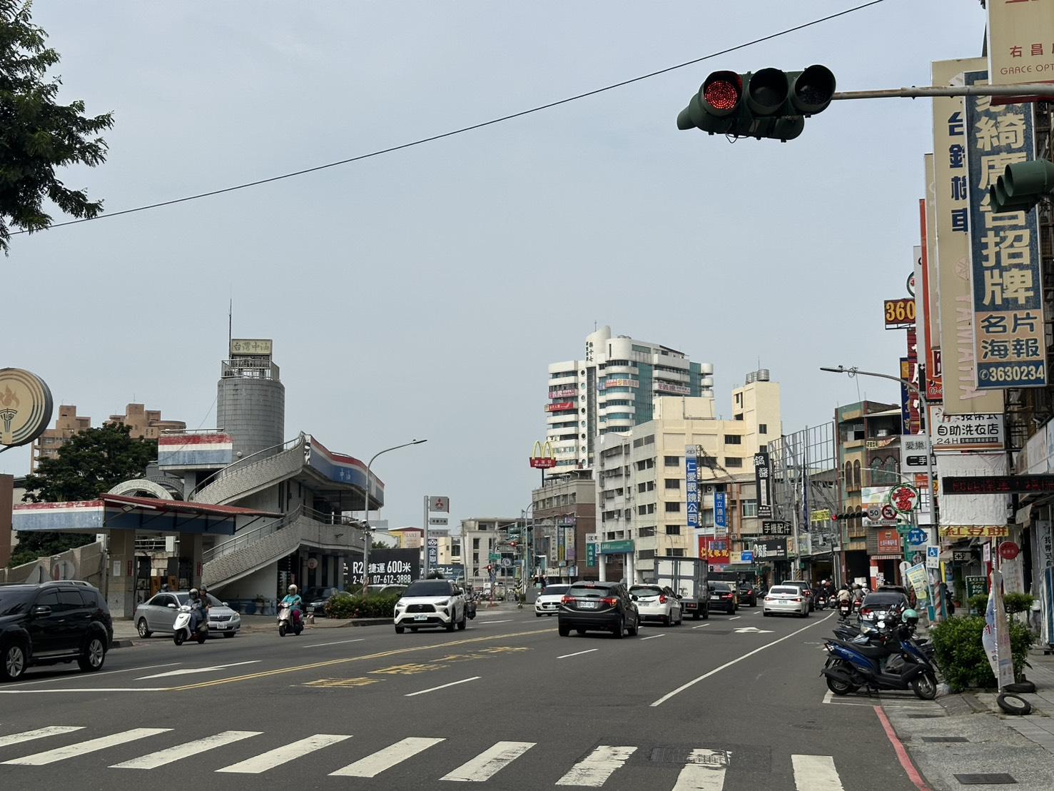 車流量大. 廣告招牌醒目