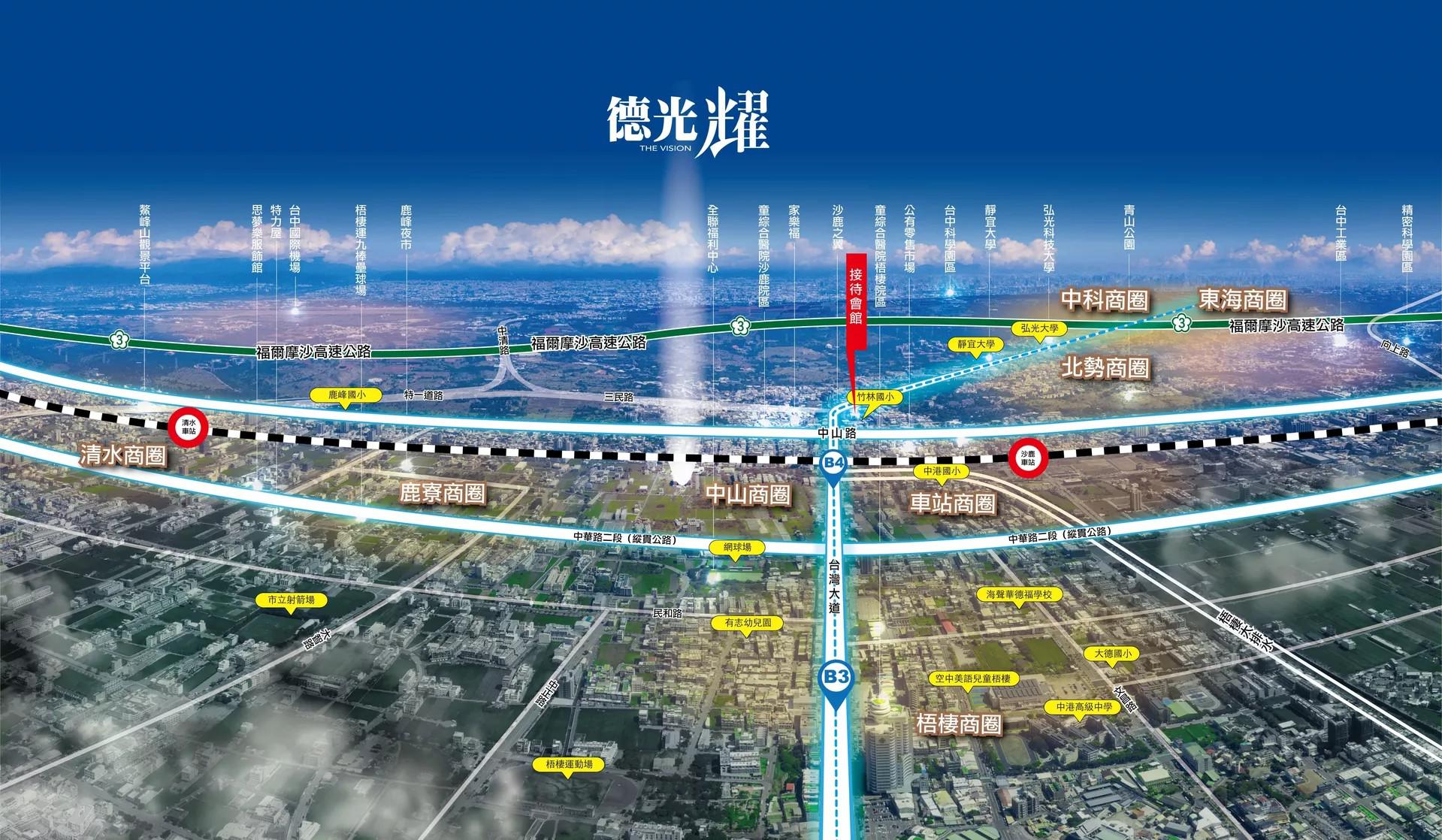 ‧ 近沙鹿火車站、台灣大道,交通往來四通發達。